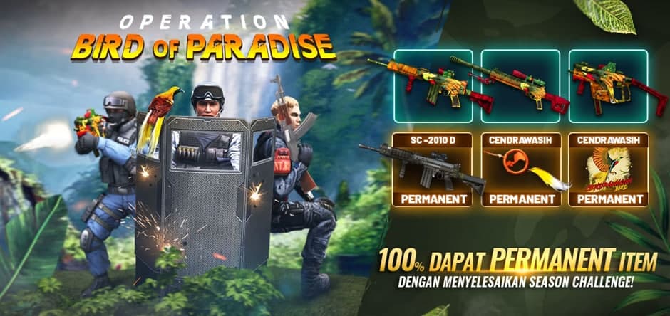 Setelah melalui maintenance yang cukup panjang akhirnya update besar Point Blank yang telah dinantikan telah tiba. Season Challenge pertama Operation of Bird Paradise telah resmi dimulai. Nah, apa itu Season Challenge? Season Challenge adalah salah satu cara bagi para Troopers untuk mendapatkan beragam jenis hadiah, termasuk Item PERMANEN dengan sangat mudah dalam periode terbatas.