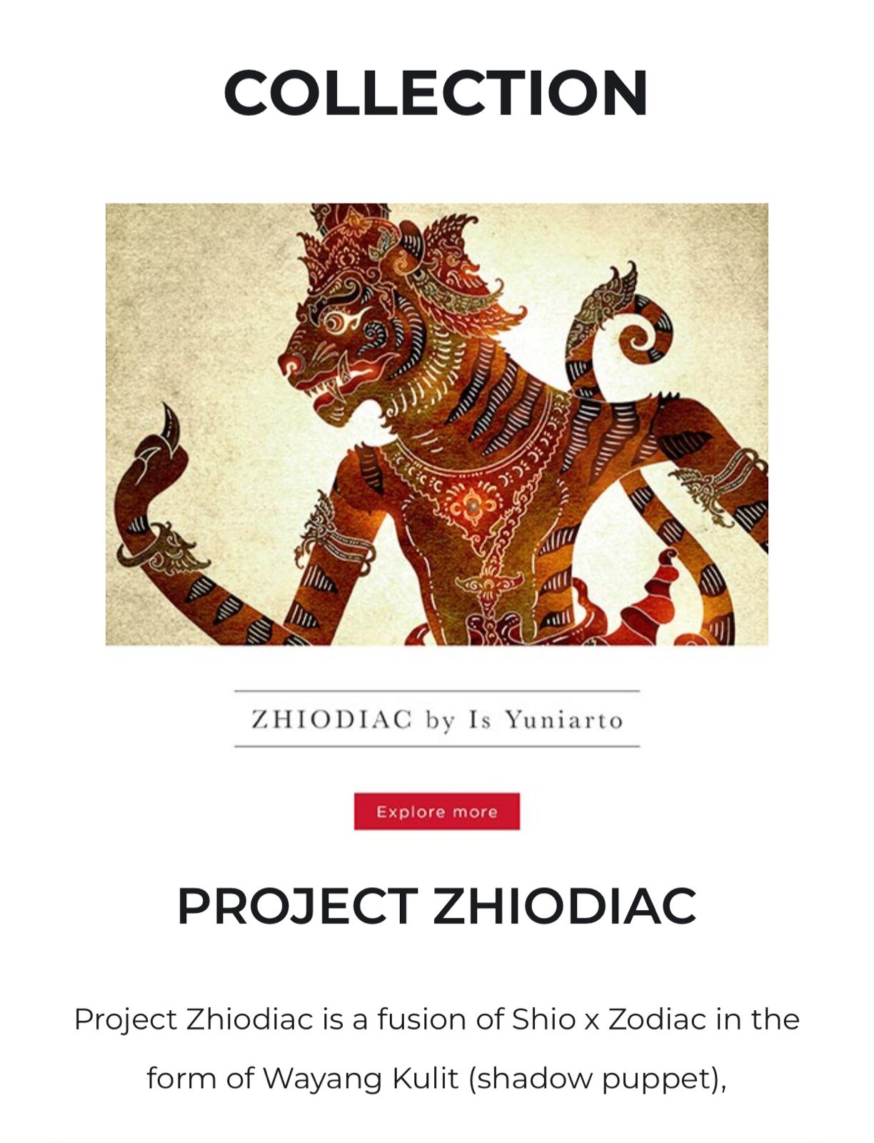 ZHIODIAC akan menampilkan 12 karakter wayang shio dengan berbagai variasi. ZHIODIAC sudah dirilis pada tanggal 29 Januari 2022 dan dapat diakses melalui OpenSea.