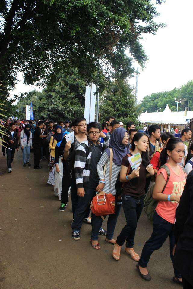 Antrean pengunjung mulai terlihat sejak pagi hari. Wajah antusias dan penasaran dengan perhalatan Hellofest kali ini terlihat dari barisan antrean pengunjung. Sekitar pukul 10.00 WIB gerbang utama HelloFest resmi dibuka. Satu per satu pengunjung mulai memasuki area Tennis Indoor Senayan.