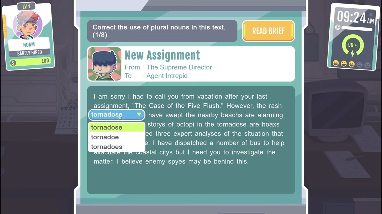 Perlu diingat, untuk menyelesaikan tugas tersebut dibutuhkan energi dan jika pemain memilih kata untuk diperbaiki, otomatis energi pemain akan berkurang. Jika energi berkurang maka pemain tidak bisa menjalankan tugas. Untuk me-recharge energi bisa dilakukan dengan tidur atau menggunakan consumable item yang tersedia.