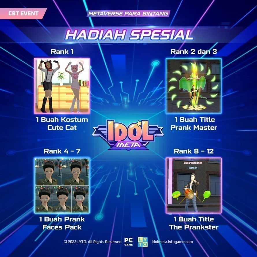 Dunia Metaverse baru akan hadir dan menjadi wadah baru bagi para Gamers untuk saling berinteraksi dan mengekspresikan diri. Dan Idol Meta akan dapat mulai dimainkan pada tanggal 8 -14 November 2022.