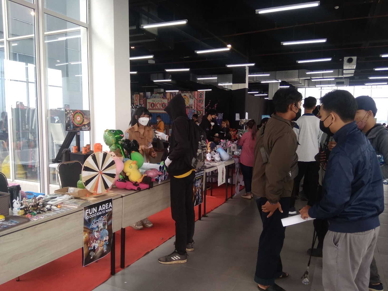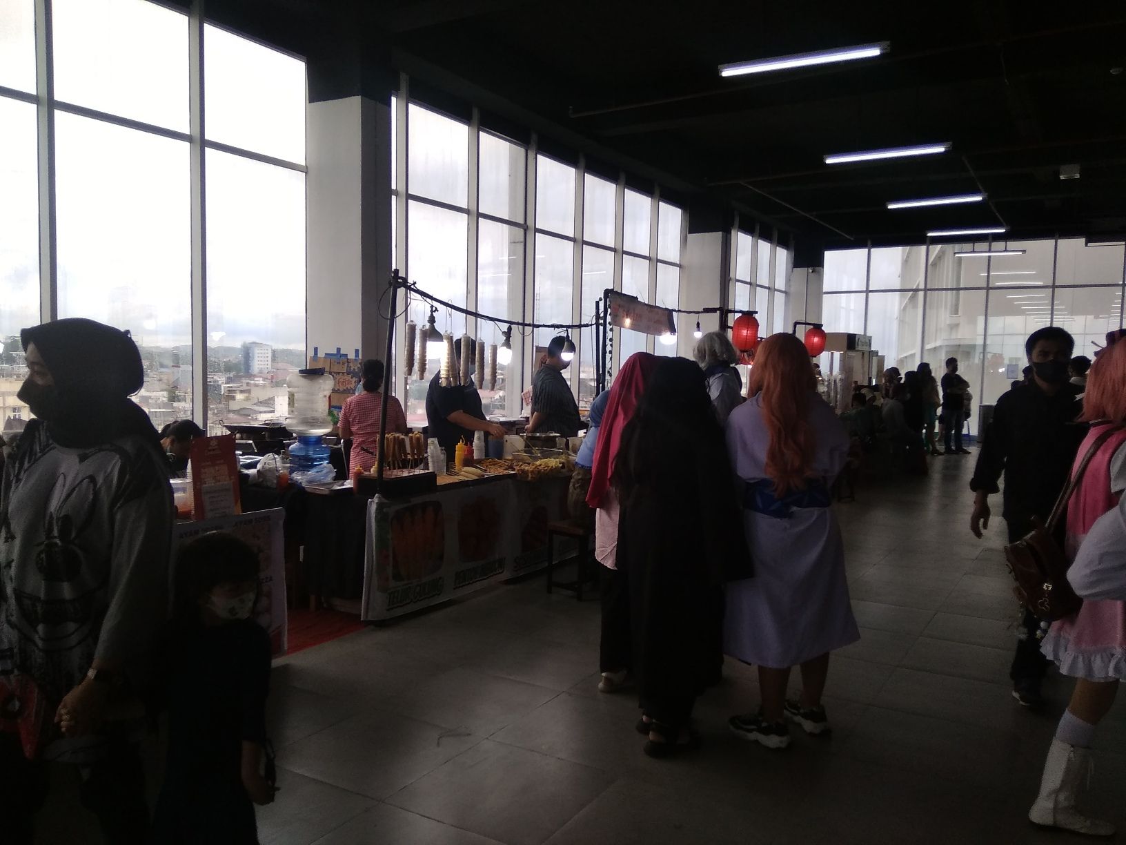 Dalam lantai tersebut, layout event-nya dibagi menjadi dua tempat yaitu tempat acara berlanggung (dibatasi dengan kain hitam) dan tempat para pedagang menjual berbagai merchandise dan jajanan seperti yang tergambar diatas tadi (meskipun ada beberapa booth/tempat jualan yang juga menjajakan merchandisenya di dalam ruangan main stage). Lokasi acara juga memiliki banyak spot background yang cocok untuk dijadikan tempat foto bareng dan selfie. Karena terletak di lantai 6, kita juga bisa dapat menyaksikan pemandangan indah dari atas gedung yang dapat memperlihatkan indahnya sungai Mahakam, salah satu sungai terbesar di Indonesia. Bahkan kita juga bisa melihat indahnya matahari terbenam dari atas sini.
