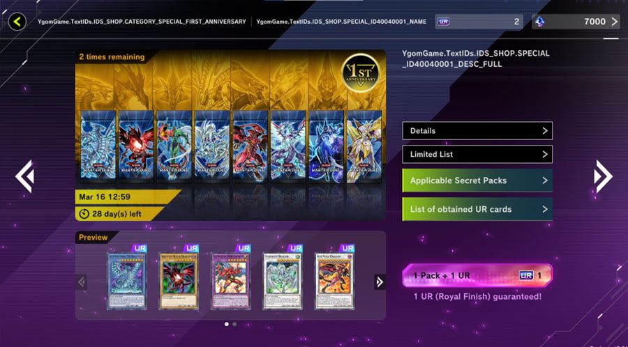 Sebagai bagian dari 1st Year Anniversary Campaign, Duelist bisa login untuk mengumpulkan hingga 3 (tiga) tiket UR. Setiap tiket bisa digunakan untuk membuka 1st Anniversary Pack dimana dari setiap paketnya dijamin akan mendapatkan kartu Royal Finish UR. Pemain juga dapat menemukan monster-monster ini dari New Step for Duelists Selection Pack, yang sekarang sudah tersedia.
