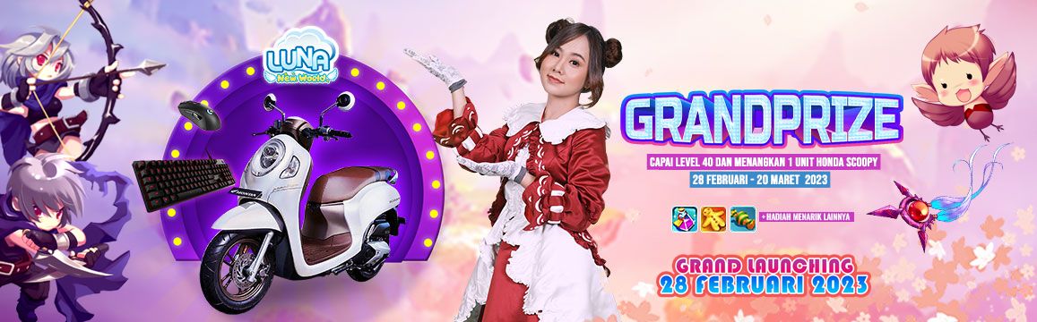 Di antaranya yaitu Event Lucky 40, semua pemain bisa ikut berpartisipasi dalam event ini. Hanya dengan cara mendownload client game Luna Online: New World, kemudian mainkan hingga karakter mencapai Lv 40, setiap pemain bisa mendapat kesempatan untuk memenangkan berbagai hadiah menarik mulai dari Logitech Gaming Mouse, Logitech Keyboard Mechanical sampai Sepeda Motor Honda Scoopy.