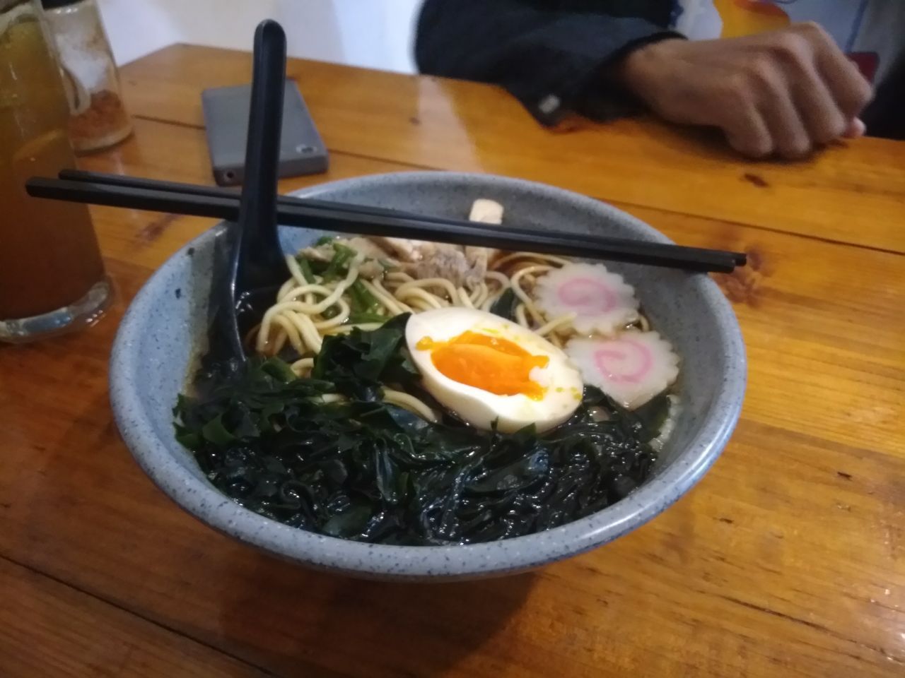 Untuk Karaagenya sendiri kurang lebih hanya potongan-potongan ayam kecil yang digoreng tepung, hampir tidak berbeda dengan Chicken Popcorn. Oh ya, untuk ramennya sendiri juga memiliki topping seperti rumput laut, naruto, telur, dan juga 2 atau 3 potong chasu.