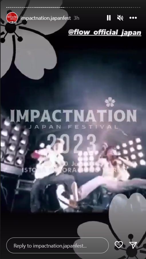 Diumumkan melalui unggahan Instagram Story event Impactnation Japan Festival pada Senin (10/4), band FLOW dan yama dipastikan akan tampil di event ini. Yang menarik lewat unggahan story sebelumnya pada 7 April lalu, tampaknya masih ada dua deretan bintang tamu lain yang akan diumumkan bakal tampil di acaranya nanti. Sebelumnya, grup idol Cho Tokimeki ♡ Sendenbu (alias Tokisen) dan DJ SENNA telah diumumkan akan meramaikan event Impactnation 2023.
