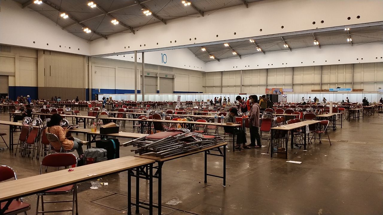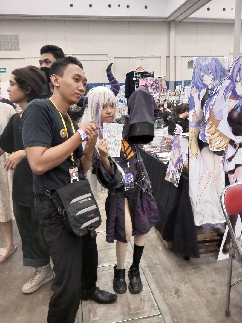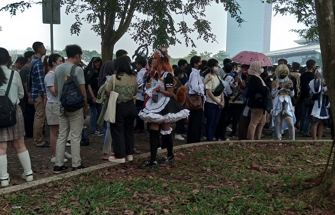 Perhelatan Comic Frontier (Comifuro) 16 hari kedua pada Minggu (7/5) ternyata masih dipadati pengunjung. Walau tidak se-hectic dan sepanjang pada hari pertama, antrian tiket yang memenuhi area parkir seberang Hall 10 Indonesia Convention Exhibition (ICE) BSD, Tangerang masih terpantau pada pagi hingga siang hari (sekitar pukul 12.00 WIB).