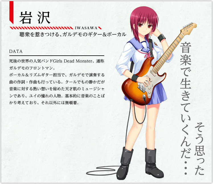 Sedangkan gim novel visualnya bertajuk Angel Beats! -1st beat- dan akan dirilis pada 29 Mei 2014. Gim ini akan mencakup rute dari tiga karakter sebagaimana yang dilampirkan di bawah ini (Iwasawa, Matsushita, dan Yui) serta akan mencakup hingga episode ke-10 rute animenya. Pengisi suara anime aslinya akan kembali mengisi suara dalam novel visual ini.