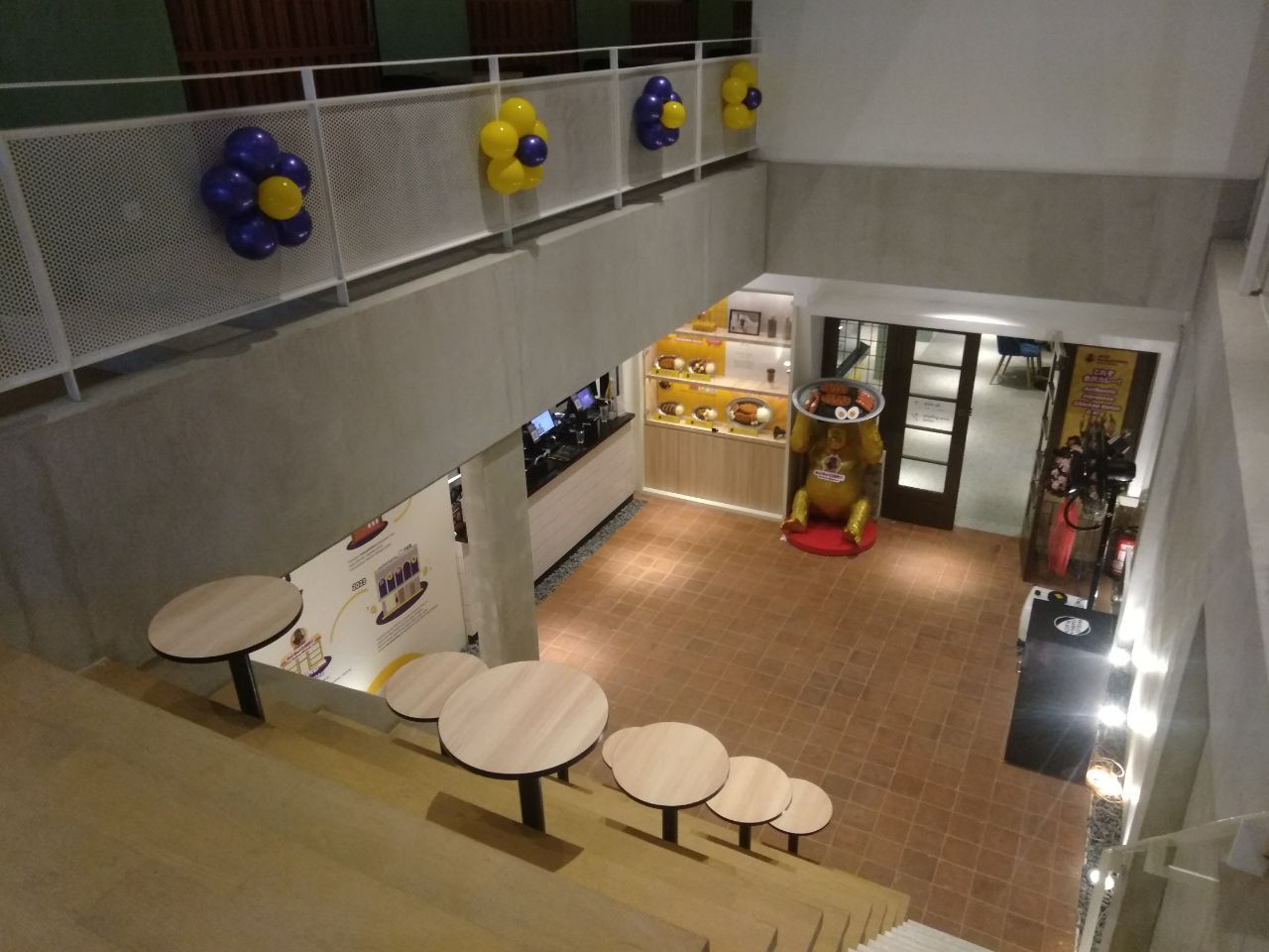 Karenanya pemandangan tangga luar dan tribun duduk ini jika dilihat langsung dari atas akan terasa “ngeri-ngeri sedap” jika anda takut dengan ketinggian. Apalagi tribun duduk untuk nobar ini juga terletak di bagian luar yang berkonsep semi outdoor. Karenanya mungkin tidak akan nyaman bagi yang kurang suka dengan hembusan angin luar.