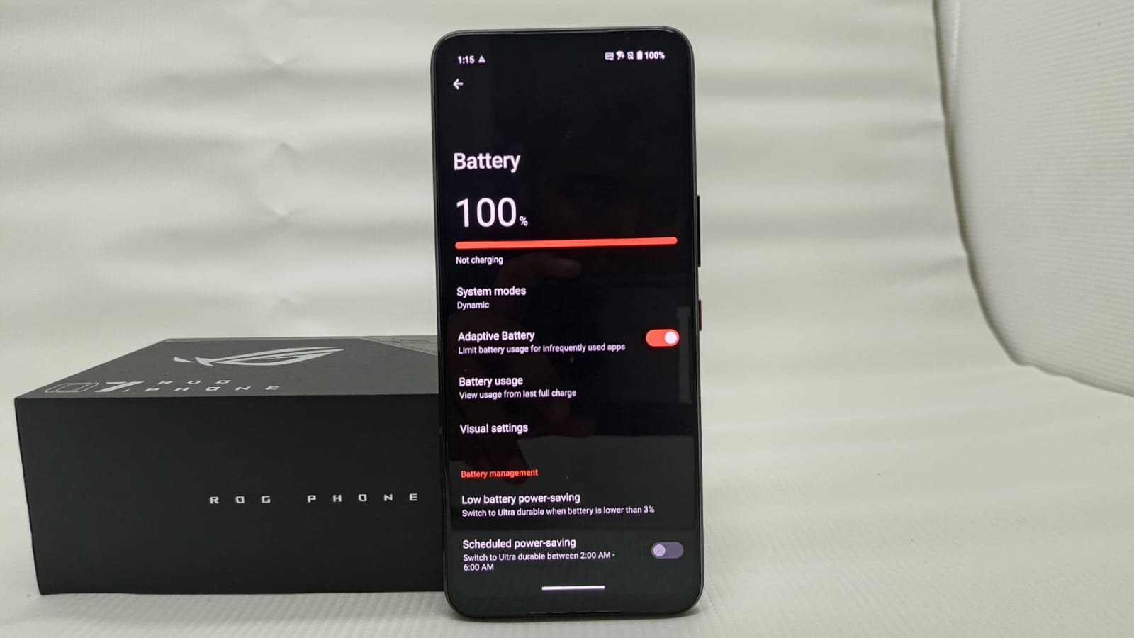 Untuk mengedepankan kenyamanan pengguna, ROG Phone 7 tampil dalam balutan inovasi yang mengesankan dengan Monster baterai berkapasitas 6000 mAh. Tak sekedar kapasitas besar, baterai ini didukung oleh 65-watt HyperCharge USB PD charger, alat pengisi daya yang mampu menghantarkan energi penuh ke baterai dalam waktu singkat, hanya 42 menit, menjanjikan ketersediaan daya yang tak terputus dalam genggaman kalian.