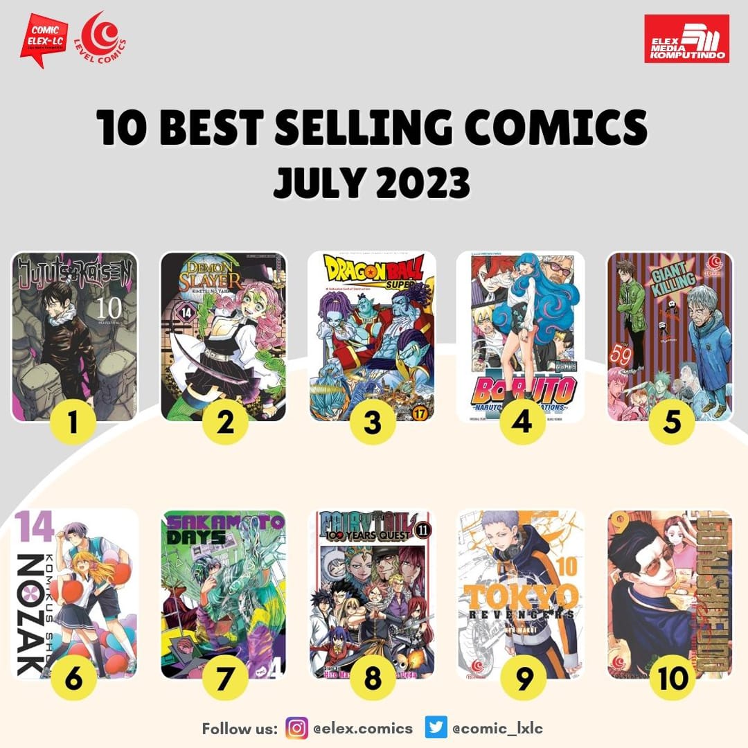 Melalui akun media sosialnya, penerbit Elex Media Komputindo telah memublikasikan judul-judul komik best seller terbitan mereka selama bulan Juni 2023. Inilah komik-komik Best Seller Elex Media Juli 2023: