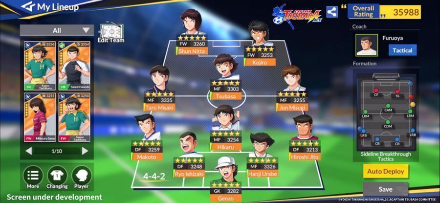 Banyak karakter populer seperti Tsubasa Ozora, Kojiro Hyuga, dan Genzo Wakabayashi akan tampil dalam game ini, dan pemain dapat merekrut karakter favorit mereka. Melalui berbagai macam sesi latihan, pengumpulan materi, dan peningkatan statistik karakter, pemain dapat menciptakan pemain sepak bola kelas atas. Memahami kekuatan dan peran setiap karakter adalah kunci untuk mengendalikan dengan mahir dan meraih kejayaan di lapangan!
