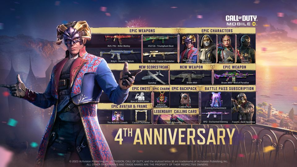 Game FPS (First Person Shooter) terbaik di Mobile, Call of Duty: Mobile (CODM) genap berusia 4 tahun pada bulan November 2023 ini. Untuk merayakan hari spesial tersebut, Garena CODM menghadirkan banyak event seru, baik di dalam game maupun secara offline. Puncak perayaan ulang tahun game ini akan hadir melalui event Anniversary Party pada 11 November 2023!