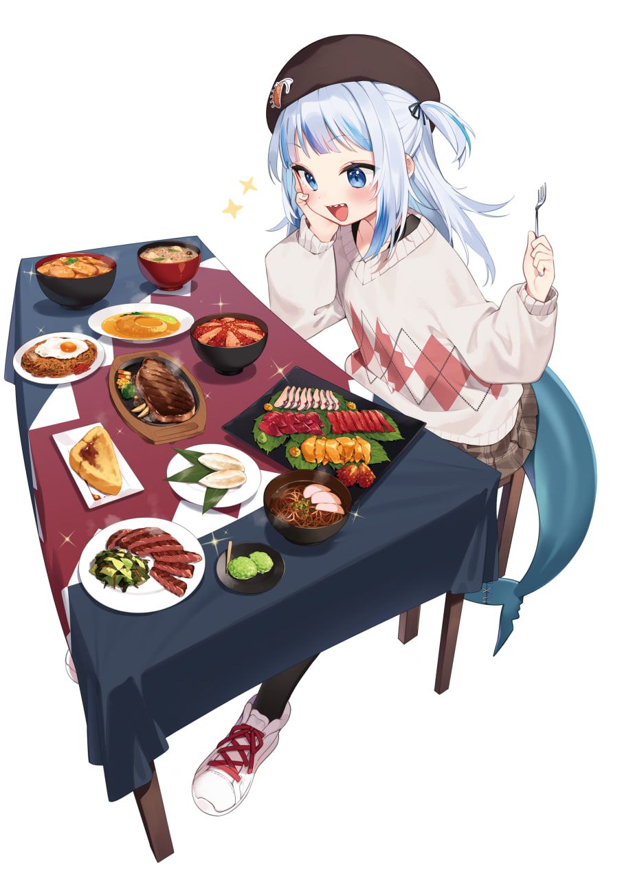 Gura membeli pakaiannya (dan topi hiu) di dunia manusia, dan dia sangat menyukainya. Di waktu luangnya, dia menikmati berbicara dengan kehidupan laut.