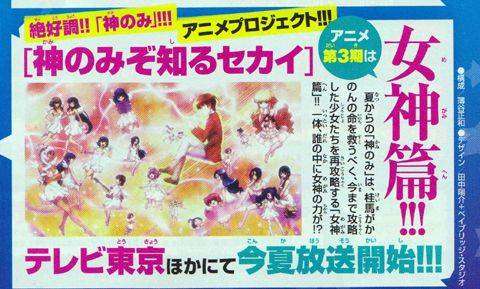 AnimeManga Musim Ketiga Seri Anime “KamiNomi” Mengusung Cerita Goddess Arc Dody Kusumanto - 16 Mei 2013 2 Bagikan FacebookTwitterWhatsAppTelegramLINE Dilansir dari majalah komik Shounen Weekly Magazine terbitan Shogakukan bahwa musim seri anime The World God Only Know akan mengusung cerita dari arc Goddess dari manganya. Musim ketiganya sendiri akan mulai tayang pada musim panas tahun 2013. Kaori Nusantara Bagikan ini: Klik untuk membagikan di Facebook(Membuka di jendela yang baru) Facebook Klik untuk berbagi di X(Membuka di jendela yang baru) X