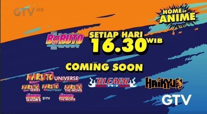 Stasiun televisi GTV akan menayangkan anime Haikyu!! dan Bleach. Hal ini terungkap melalui iklan yang tayang langsung dalam siaran GTV. Mereka juga akan menayangkan berbagai anime-anime Naruto yang pernah mereka tayangkan di masa lalu, termasuk anime Boruto yang saat ini tengah tayang.