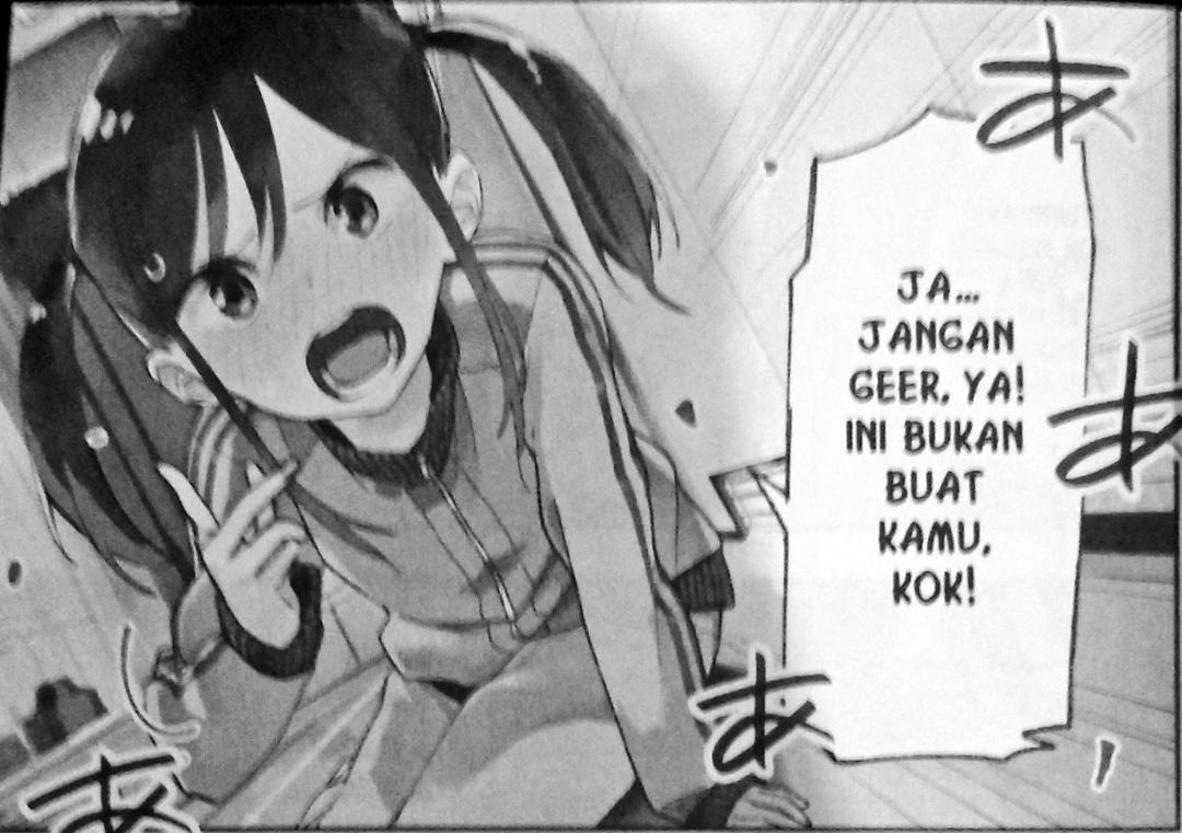 Mengesampingkan hal itu, bagaimana kualitas komik dan terjemahannya? Bagi saya kualitas komik yang disajikan di sini cukup baik dengan harga yang ditawarkannya. Saya tidak melihat adanya cacat produksi atau warna yang pudar pada komik yang saya baca. Akan tetapi bagi saya penerjamahannya lah yang sedikit kurang pas. Saya paham bahwa tidak semua kata dari bahasa Jepang dapat diterjemahkan secara langsung ke bahasa Indonesia. Namun akan lebih baik jika ada suatu catatan atau terjemahan kasarnya (menurut saya pribadi). Jujur saja jika ini dibaca oleh pembaca yang belum mengenali dunia anime atau komik jepang, rasanya terdapat beberapa kata yang agak susah untuk dipahami oleh pembaca seperti harem dan tsundere. Memang kata tersebut jarang muncul, tapi rasanya sedikit aneh terutama untuk tsundere ketika tipe pacar lainnya malah menggunakan bahasa Indonesia seperti “kalem”, “manis”, maupun “centil”.