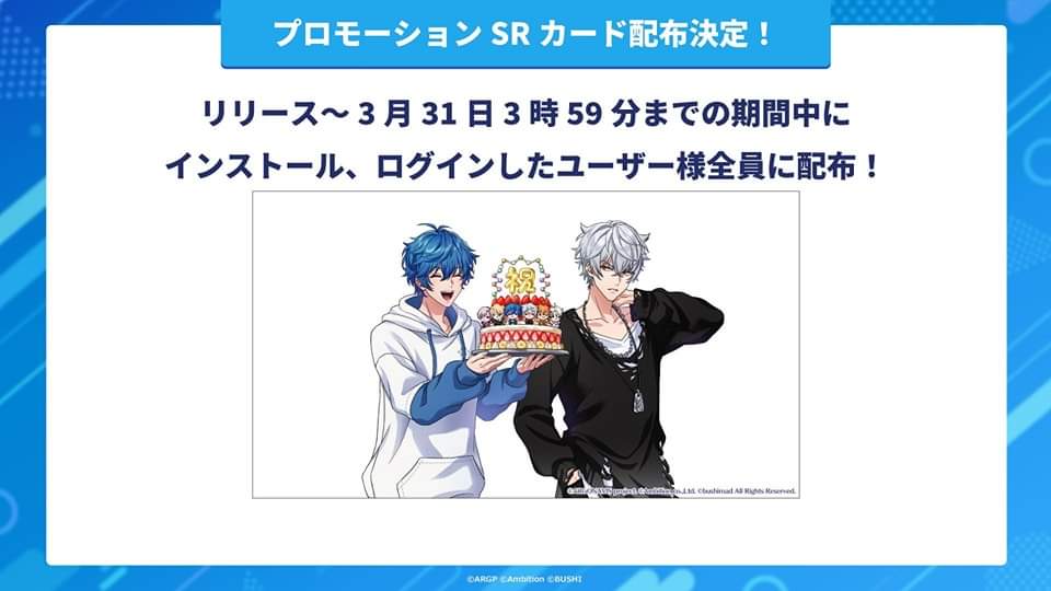 Untuk memperingati perilisan gim ini, pemain yang menginstal dan login pada periode perilisan hingga paling lambat 31 Maret pukul 03:59 JST (atau 01:59 WIB) akan mendapatkan kartu promosi SR bergambar karakter Ren Nanahoshi dari band Argonavis dan Nayuta Asahi dari GYROAXIA.