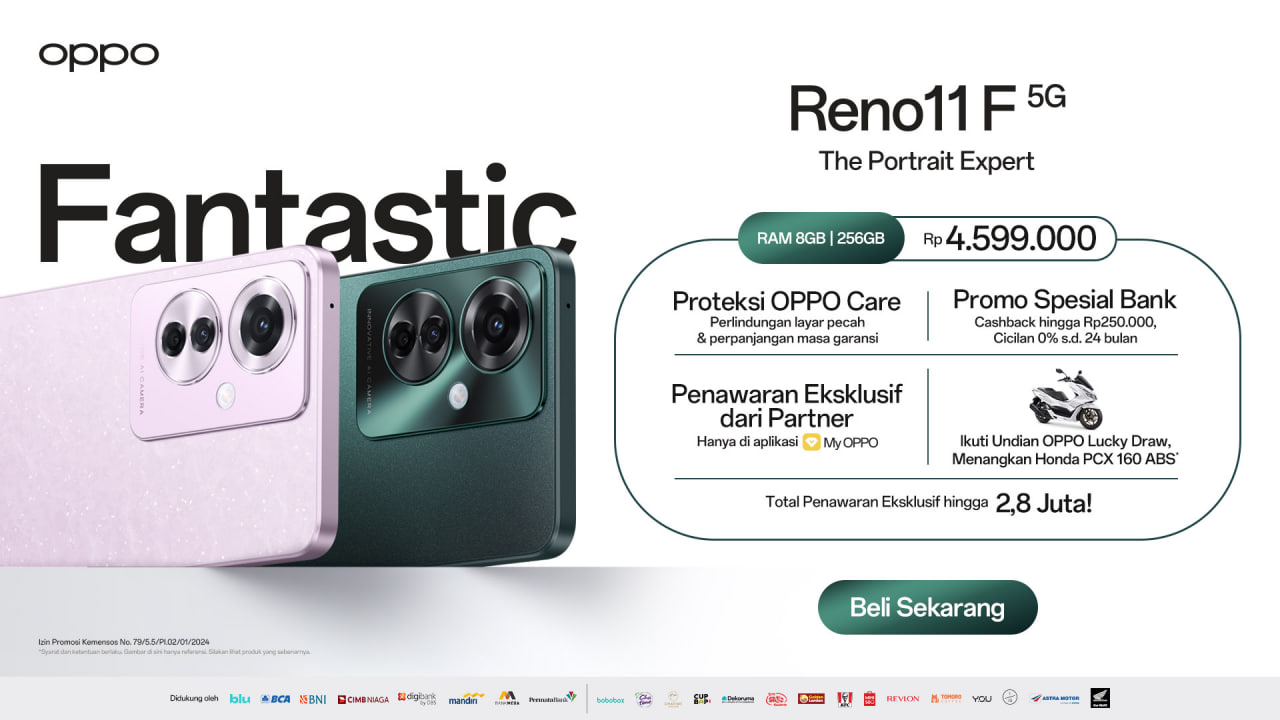 “Penjualan perdana Reno11 F 5G digelar secara serentak sebagai selebrasi OPPO menyambut kehadiran perangkat #FantasticReno series untuk konsumen Indonesia. Promosi menarik melalui #FantasticRenoDance menjadi langkah OPPO untuk menjangkau pasar anak muda dan Gen-Z guna memperkenalkan fitur unggulan Reno11 F 5G melalui cara yang relevan bagi generasi yang social savvy ini. Nyatanya, OPPO telah berhasil menggaet ribuan netizen, content creator hingga selebriti ternama di sosial media dalam meriahkan #FantasticRenoDance,” jelas Patrick Owen, Chief Marketing Officer OPPO Indonesia.