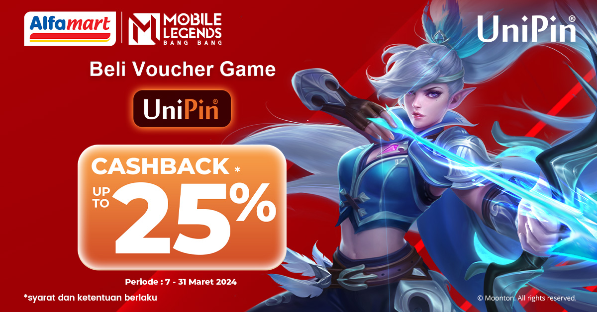 Selama masa promosi, pengguna yang melakukan top-up produk digital Uni Pin melalui Alfamart berkesempatan mendapatkan bonus cashback hingga 25%. Promo, bonus, dan diskon menarik nantinya juga akan diberikan khusus untuk pengguna yang melakukan pembelian di Alfamart.