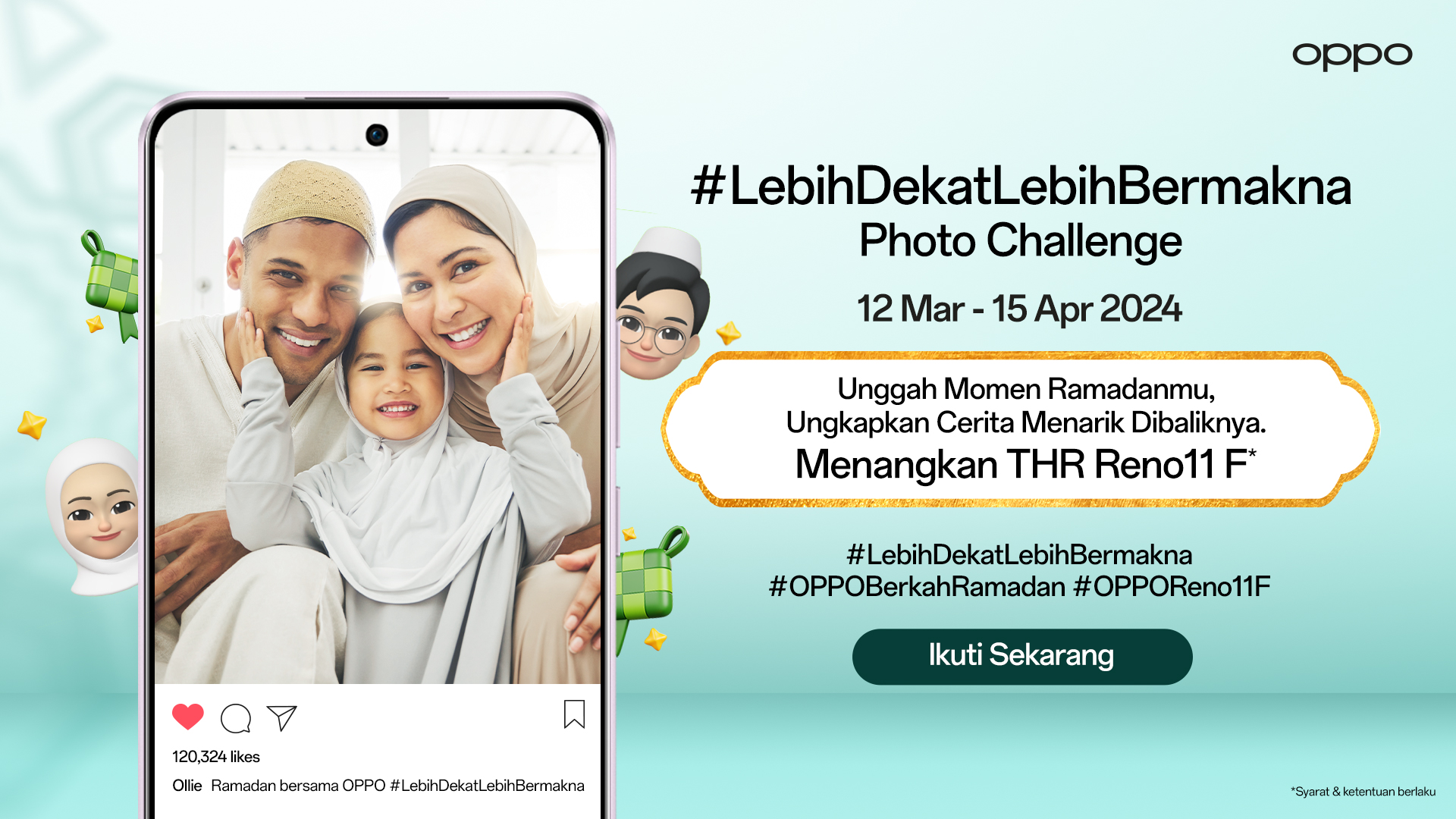 - Ungkapkan cerita menarik dari momen yang memberikan kesempatan untuk lebih dekat dengan orang-orang tersayang selama di bulan suci Ramadan dengan tagar #LebihDekatLebihBermakna #OPPOBerkahRamadan