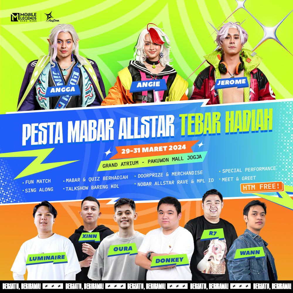 Mobile Legends: Bang Bang (MLBB) mengumumkan rangkaian acara puncak dari ALLSTAR Music Festival. Mengangkat slogan global TEAM UP, ENJOY THE BEATS, event dengan slogan lokal Bersatu dan Berirama ini akan mengadakan promo diamond, skin edisi terbatas, hingga offline event besar yang dimeriahkan oleh berbagai pertunjukan seru.