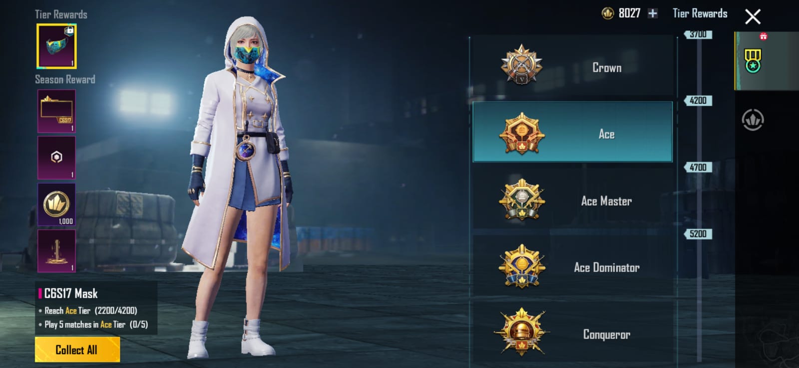 Ace Master adalah salah satu rank tertinggi di PUBG MOBILE yang tentunya sulit untuk dicapai. Jika berhasil menyelesaikan tantangan ini, pemain akan mendapatkan hadiah skin rambut wanita C6S17 Cover, juga hadiah tambahan C6S17 Ace Master Title, Name Tag, efek spesial team–up, dan 1000 Season Token.