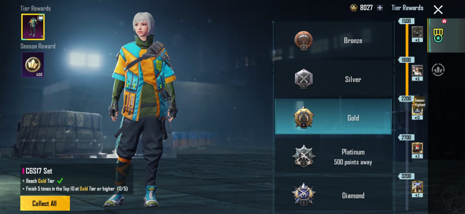 Hadiah permanen pertama yang tersedia di musim ini adalah C6S17 Set. Untuk mendapatkannya, pemain hanya perlu mencapai minimal rank Gold dan menyelesaikan permainan dengan masuk peringkat sepuluh besar sebanyak 5 kali. Pemain juga akan mendapatkan hadiah tambahan 400 Season Token jika mencapai rank ini.