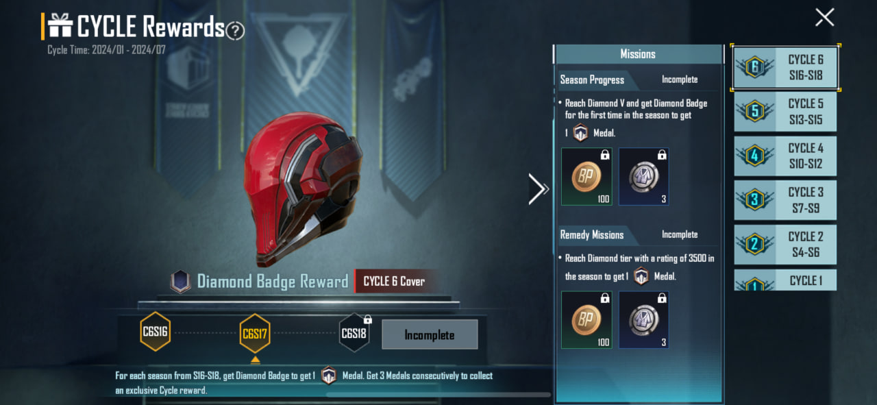 Memasuki CYCLE 6, para pemain harus memulai tantangan di C6S17 dengan lebih serius. Pasalnya, ada hadiah eksklusif akan menanti mereka yang bisa mencapai rank Diamond selama 3 musim berturut-turut.