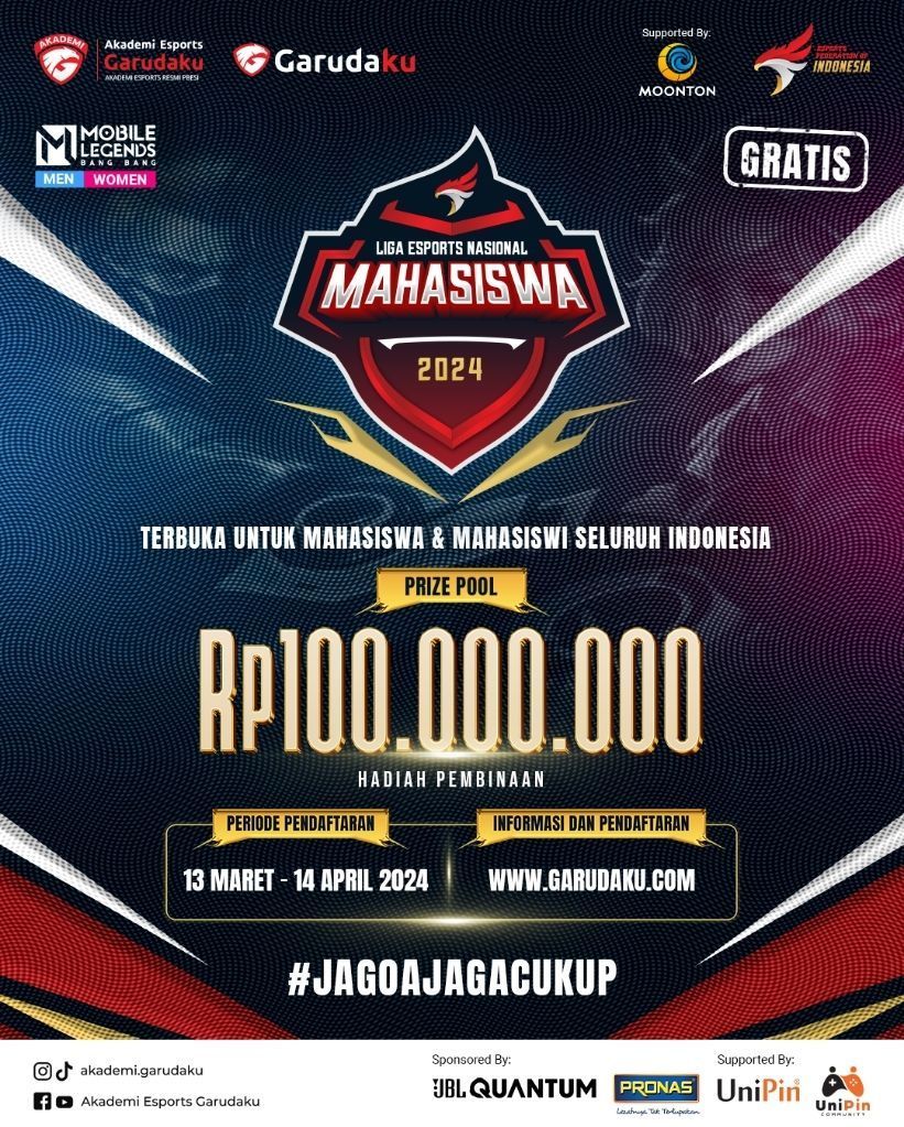 Kompetisi Liga Esports Nasional Mahasiswa 2024 yang menjadi kompetisi tingkat mahasiswa dan mahasiswi terbesar di Indonesia akan digelar dalam waktu dekat, dengan jangkauan yang mencakup seluruh Universitas di seluruh Indonesia. Kompetisi ini akan mengedepankan impian tiap mahasiswa untuk menggapai mimpi untuk bisa berkarir di bidang esports.