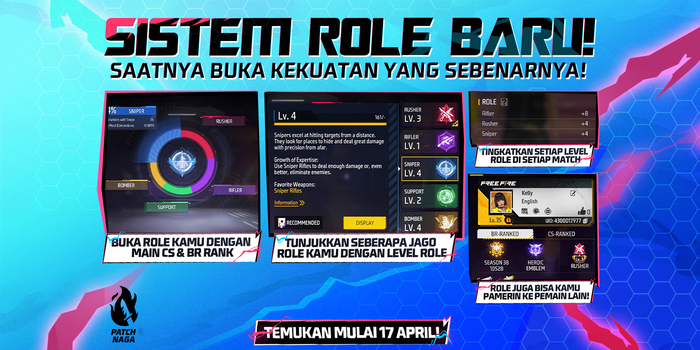 Dengan berbagai alternatif kombinasi karakter dan skill Free Fire saat ini, setiap pemain memiliki gaya bermain dan role yang berbeda. Untuk itu, Free Fire memperkenalkan Sistem Role baru, di mana setiap pemain bisa mendapatkan role berbeda sesuai dengan gaya permainan dan keahlian mereka yang diidentifikasi oleh Sistem Role baru ini.