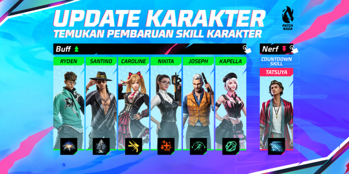 Berikut adalah beberapa penyesuaian karakter di patch update Naga Free Fire: