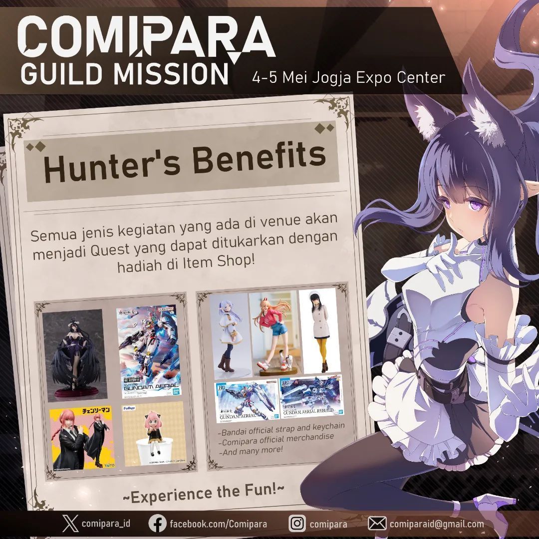 Selain berburu khilafan, jalan-jalan di event ini juga bakal semakin asyik dengan quest Guild Mission dari Comic Paradise 2! Para quest hunter yang menyelesaikan misinya bakal mendapatkan hadiah “uang” berupa Cora yang bisa ditukar dengan berbagai merch spesial dari event ini, mulai dari figur hingga model gunpla Gundam Aerial!