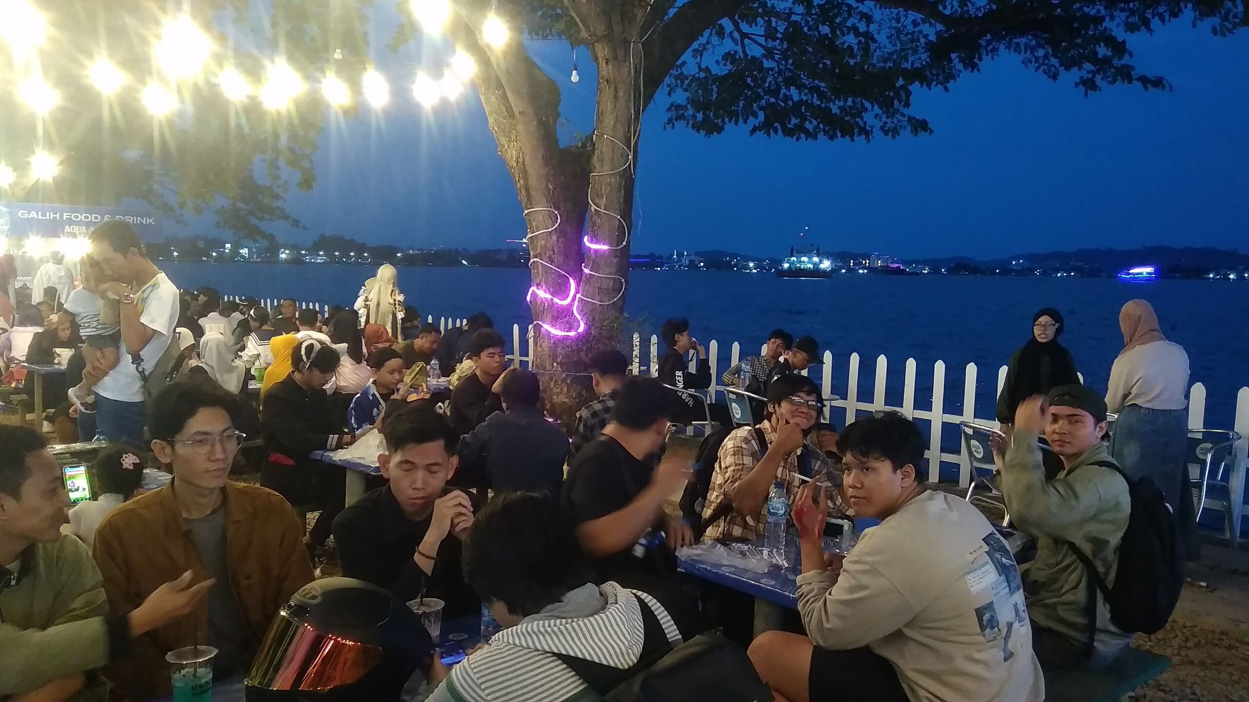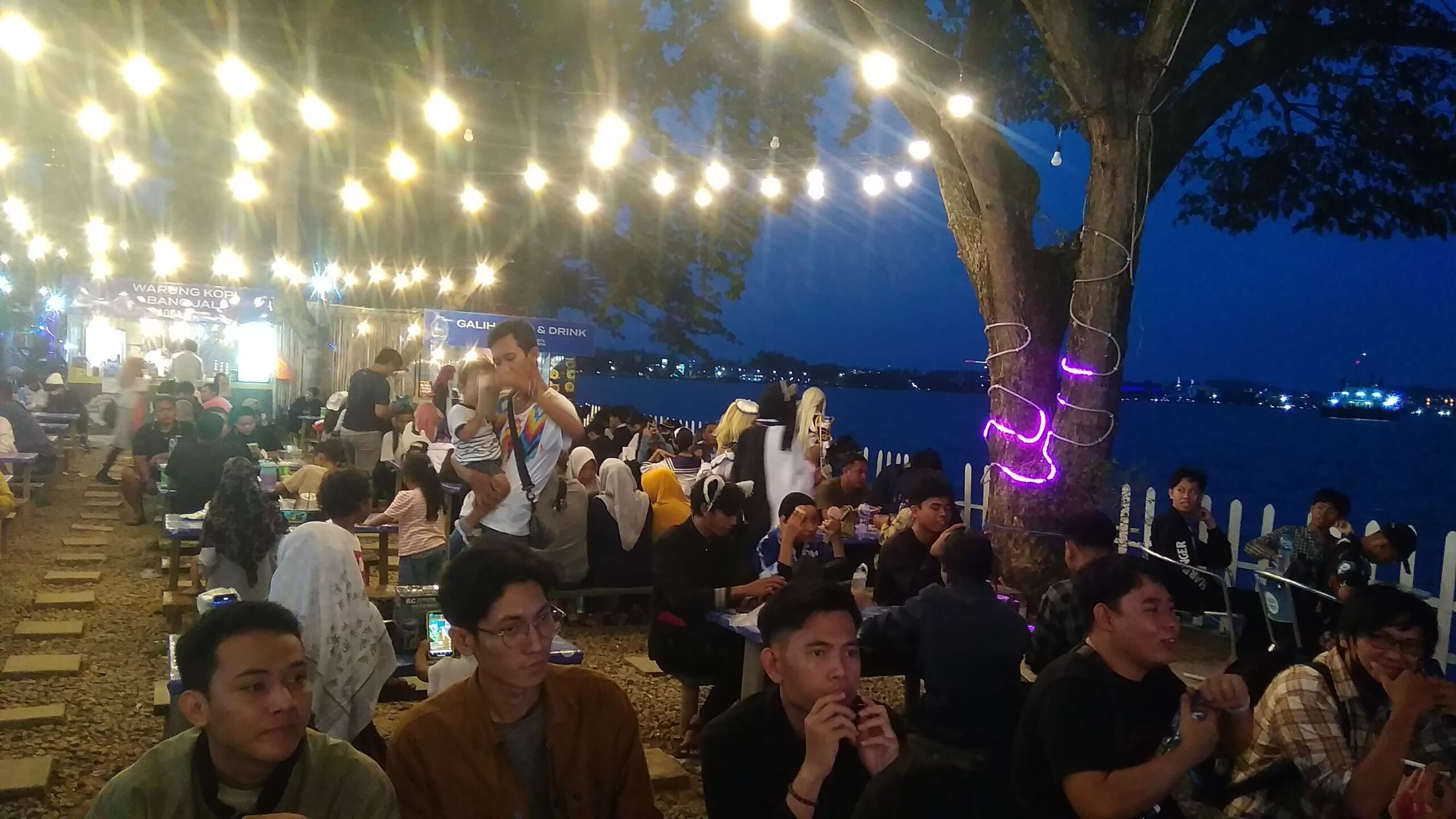 Di sini kalian bisa dengan leluasa bisa melihat pemandangan indah sungai Mahakam dari dekat yang terlihat seperti lautan, apalagi kalau datang pas sore-sorean bisa dapat menikmati indahnya matahari terbenam. Di sini kalian juga akan dijajaki dengan berbagai aneka makanan dan minuman yang berjualan di sini mulai dari bakso, mie ayam, nasi goreng, jajanan street food, makanan manis seperti cendil dan bubur sumsum, dan masih banyak lagi. Apalagi di tempat ini juga tersedia berbagai tempat hiburan seperti photobooth, karaoke, dan panggung acara yang biasa digunakan untuk bernyanyi dan bahkan acara cosplay sekalipun.