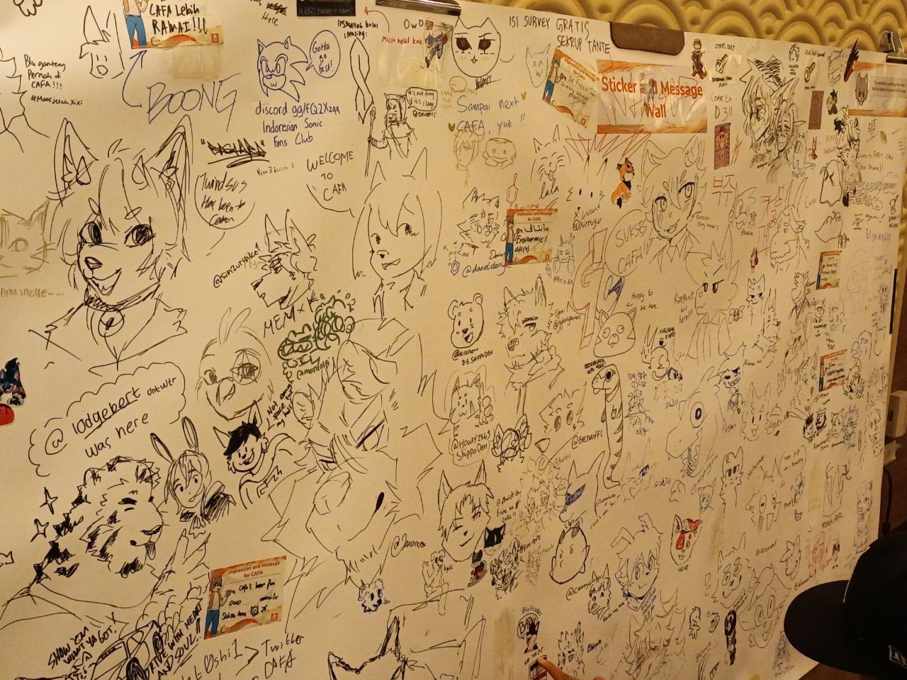 Berbicara tentang area acaranya, ruangan yang dipakai untuk event Creators Anthro Fair 2024 sendiri sebenarnya tidak telalu luas. Namun hal ini membuat eventnya terasa menjadi acara kumpul-kumpul fandom anthro di Jakarta dan sekitarnya yang terasa asik dan cukup akrab. Untuk menambah meriahnya acara, di dalam venue juga disediakan papan doodle yang bisa digambar sebebasnya serta sesi undian atau raffle berhadiah merch menarik dari panitia menjelang penutupan acara di sore hari.