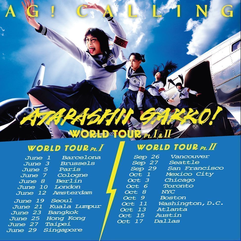 Setelah membuat dampak besar pada sirkuit festival tahun ini dengan penampilan yang banyak dibicarakan di Coachella, Head in the Clouds, dan Primavera Sound, ATARASHII GAKKO! saat ini sedang dalam rangkaian 2024 World Tour di Eropa dan Asia, memukau para penonton, dengan tiket yang terjual habis di Paris, Cologne, Berlin, Amsterdam, Hong Kong, dan Taipei. Grup ini akan membawa pertunjukan live mereka yang luar biasa ke Amerika Utara pada musim gugur ini, untuk terus menginspirasi dan memberi energi kepada para penonton di seluruh dunia.