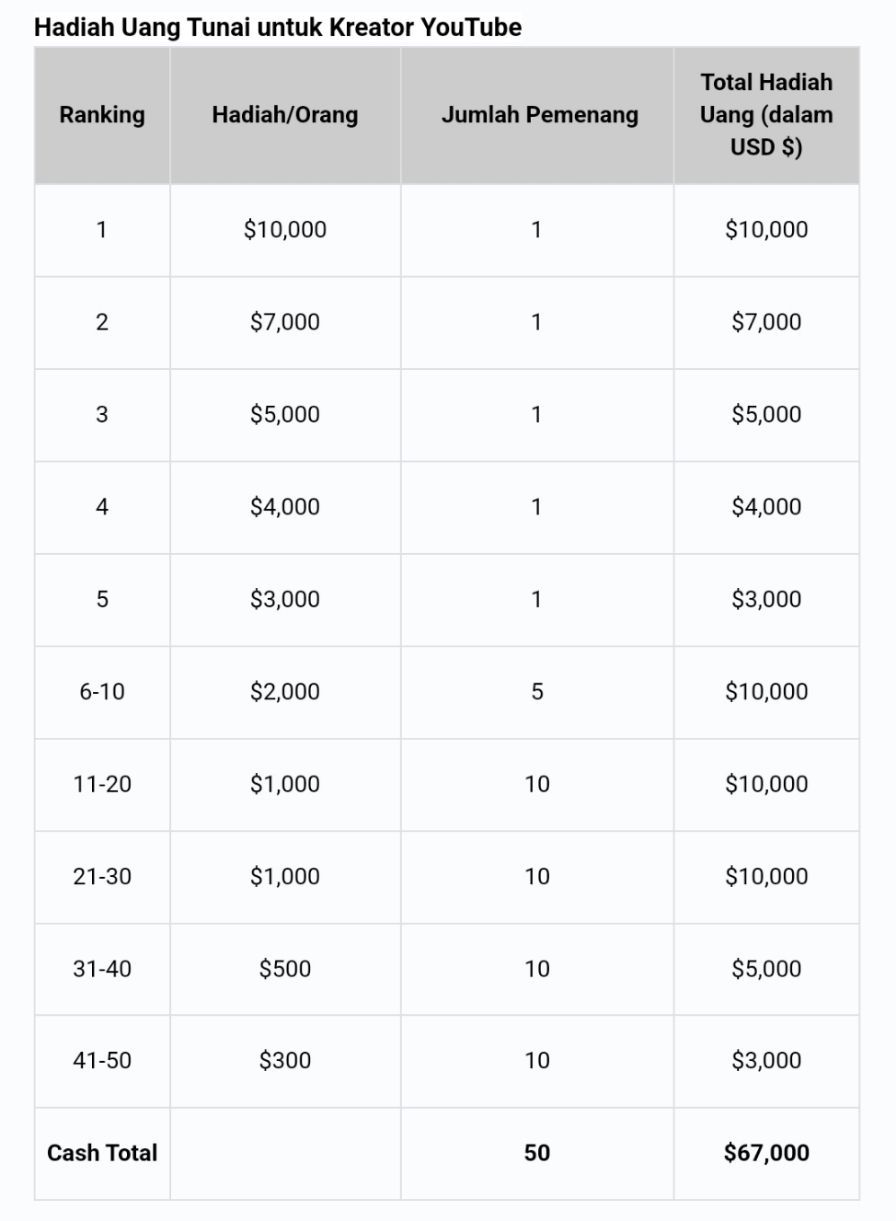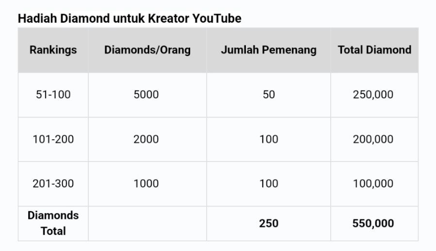 Berikut adalah prize yang diberikan di event #MLBBNEXTCREATOR COMPETITION
