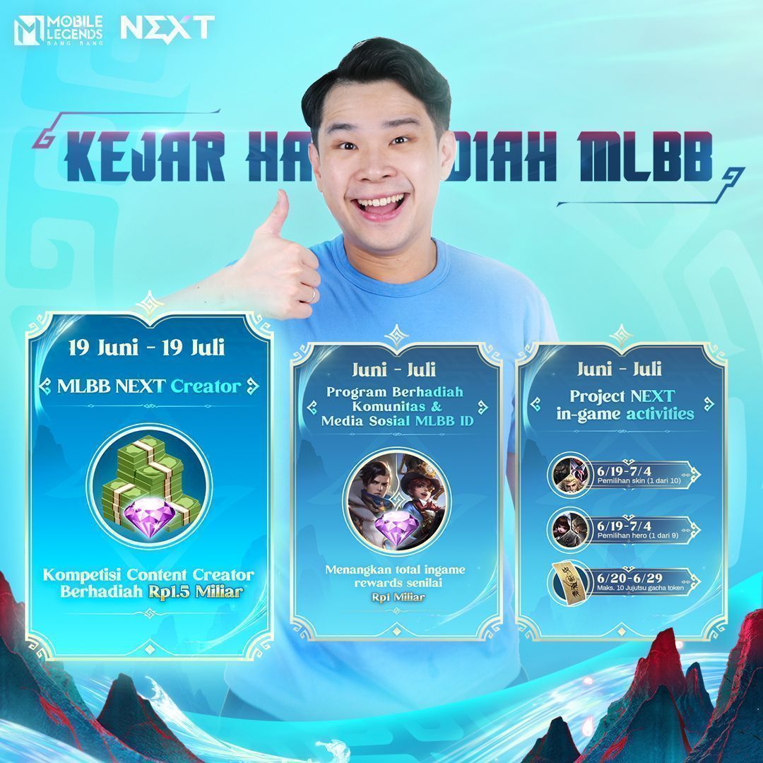 Project NEXT 2024 akan menjadi salah satu yang paling ditunggu oleh para pemain setia Mobile Legends: Bang Bang (MLBB). Event ini akan menghadirkan update baru serta hadiah-hadiah di in game yang yang menarik. Salah satu event yang diadakan oleh Moonton Games untuk rangkaian Project NEXT 2024 adalah Kejar Hadiah MLBB dari tanggal 19 Juni 2024 hingga 18 Juli 2024 yang menawarkan total hadiah hingga 1 Juta Dollar secara Global dan Indonesia dengan hadiah tertinggi senilai 1,5 Miliar Rupiah serta ratusan ribu diamonds untuk para pemainnya.
