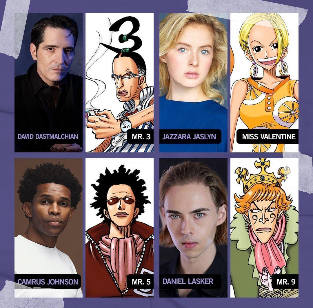 Kini sejumlah aktor dan aktris telah diumumkan untuk memainkan sejumlah pentolan Baroque Works. Inilah mereka:
