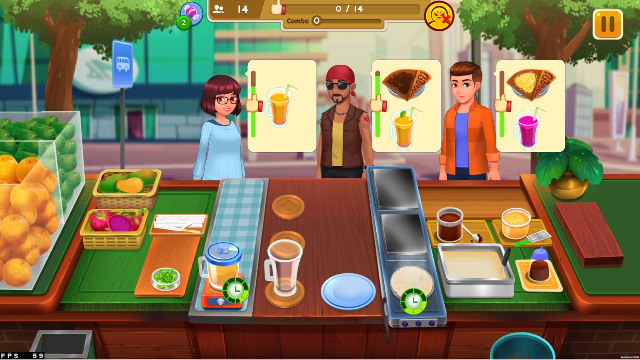 Menu utama di chapter Renata adalah crepes, panganan kue tipis dari Perancis yang renyah dan manis. Sebagai pelengkap, pemain juga bisa menyajikan jus dan smoothies buah yang menyegarkan.