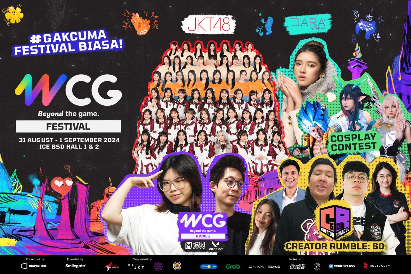 WCG Festival merupakan acara puncak dari World Cyber Games 2024. Acara yang rencananya akan digelar di ICE BSD, Tangerang ini menghadirkan 3 stage berbeda dengan hiburan yang beragam: Stage W, Stage C dan Stage G. Pada ketiga stage ini akan digelar berbagai kompetisi dan program hiburan seru, mulai dari WCG Rivals MLBB yang berada di Stage W, WCG Rivals Valorant yang berada di Stage G , hingga The Creator Rumble: 60 yang berada di Stage C.