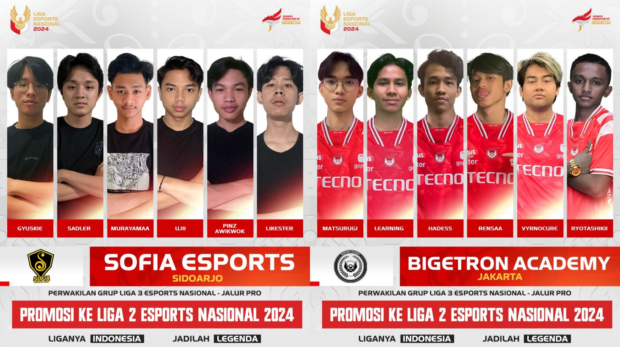 Dua tim baru yang penuh semangat, Sofia Esports dari Sidoarjo dan Bigetron Academy dari Jakarta telah berhasil mengamankan tempat mereka di Liga 2 Esports Nasional 2024 setelah melalui babak kualifikasi yang ketat di Liga 3 Jalur Pro. Dengan tekad kuat dan strategi matang, kedua tim ini siap untuk membuktikan diri di panggung yang lebih besar.