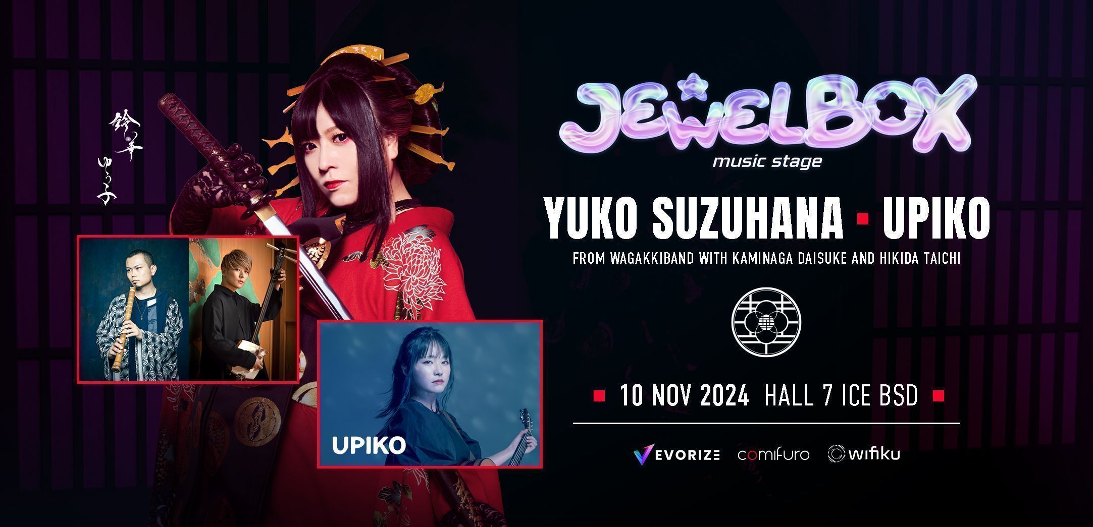 Yuko Suzuhana sendiri akan tampil dalam gelaran konser bertajuk Jewel Box Music Stage. Digelar oleh Evorize yang bekerjasama dengan Comic Frontier 19, konser ini akan menampilkan Yuko Suzuhana yang akan tampil bersama dua personil Wagakki Band, yaitu Daisuke Kaminaga sang pemain shakuhachi dan Taichi Hikida sang pemain shamisen Tsugaru yang engah naik daun di Jepang. Konser ini juga bakal diramaikan oleh UPIKO, penyanyi yang punya gaya unik dan energik yang sedang populer di media sosial.