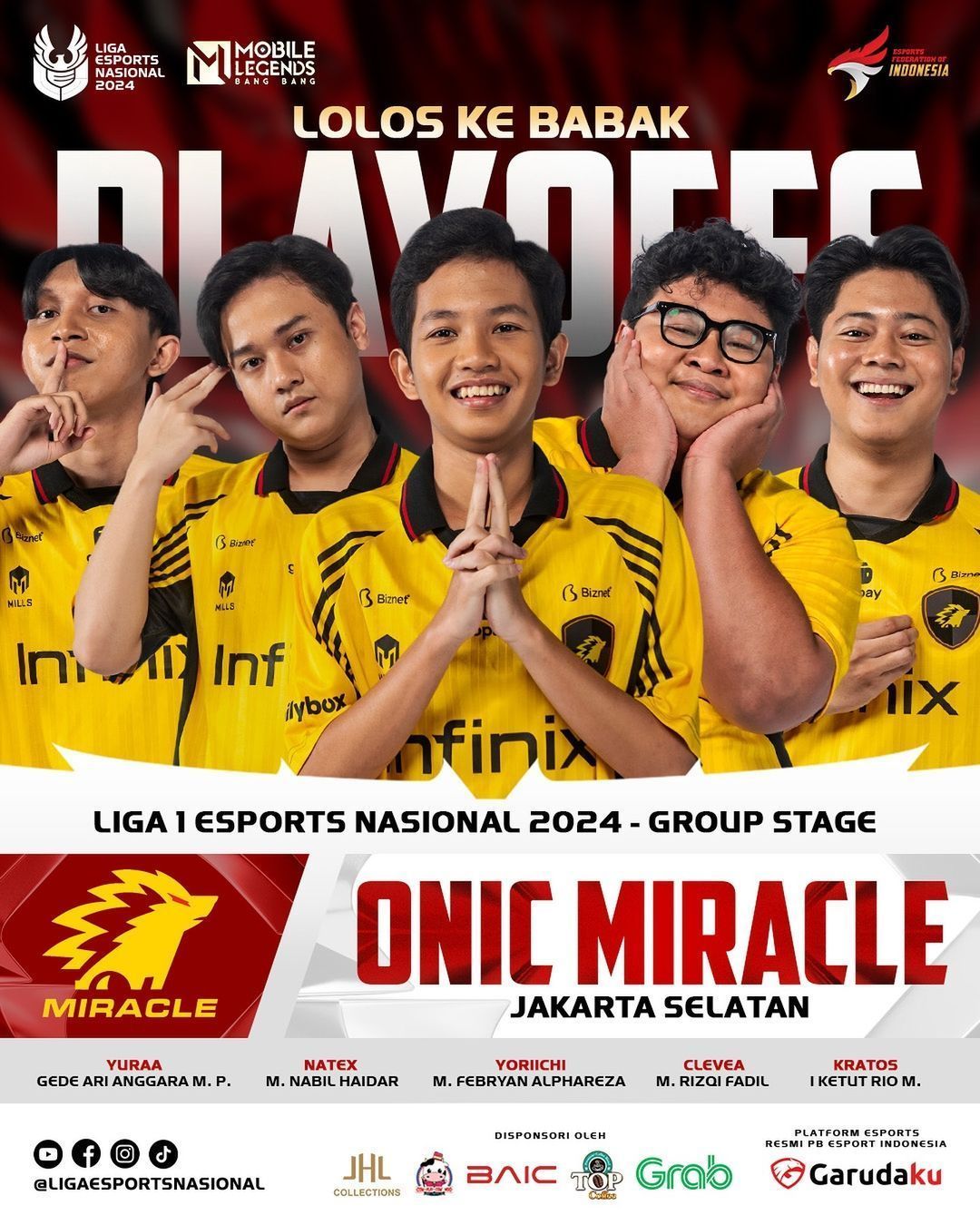 ONIC Miracle tampil penuh kejutan di musim ini dengan formasi 10 pemain yang fleksibel. ONIC Miracle dikenal cerdik dalam merotasi pemain setiap minggunya, menjaga stamina dan konsistensi sepanjang kompetisi. Taktik ini berhasil membawa mereka menduduki peringkat kedua. Dengan permainan disiplin dan strategi adaptif, ONIC Miracle merupakan ancaman besar bagi tim-tim lawan. Mereka akan menanti pemenang dari match 2 di match 4 dan siap mempertahankan momentum mereka di playoffs.