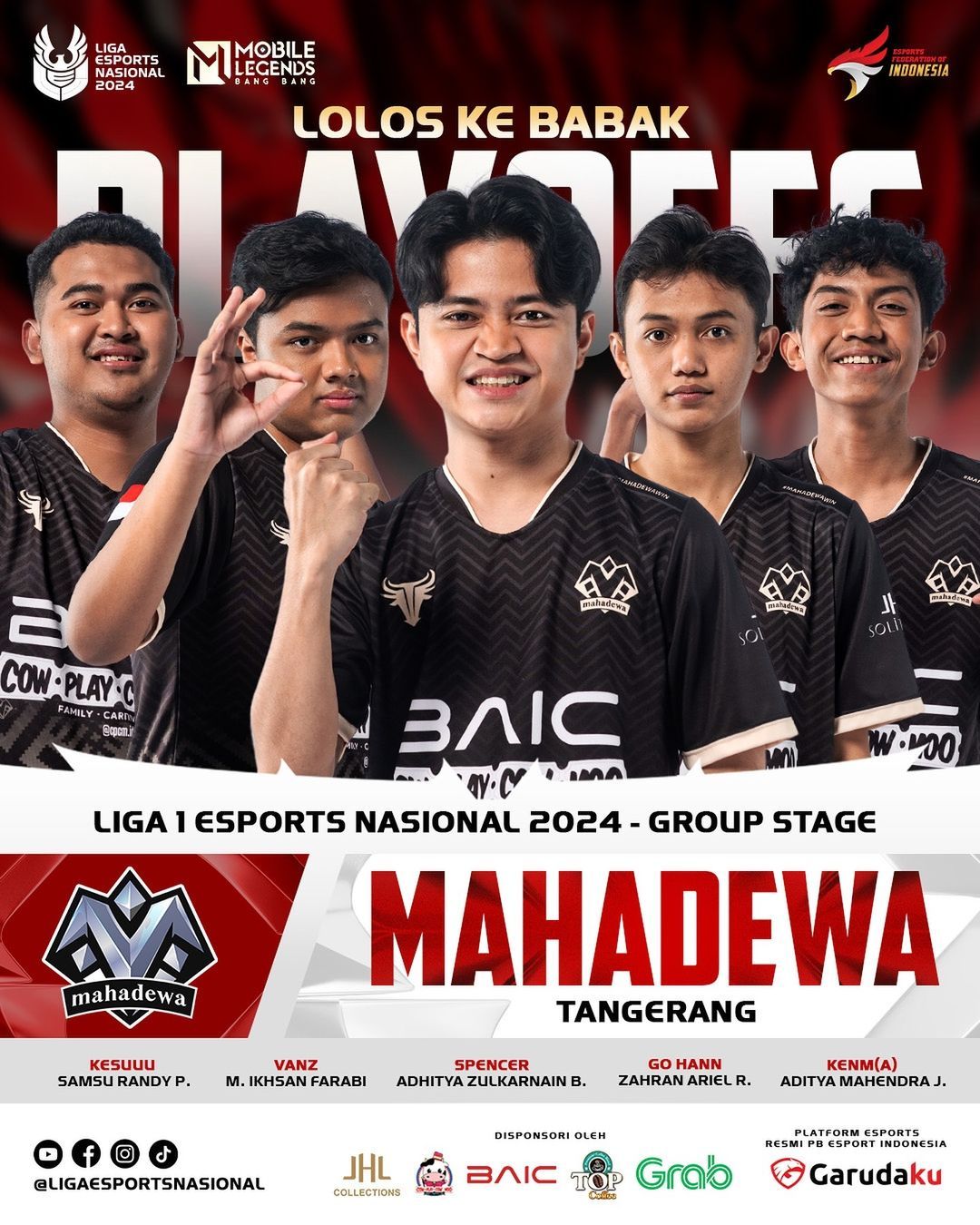 Mahadewa adalah kisah sukses dari tim yang mengandalkan talenta-talenta muda dan wajah baru. Meski tidak diunggulkan pada awalnya, permainan mereka yang solid dan terstruktur, terutama di late game, membuat Mahadewa tampil menonjol dan mengamankan posisi ketiga. Kejutan demi kejutan mereka hadirkan di sepanjang fase grup, membuktikan bahwa mereka bukan tim yang bisa diremehkan. Mahadewa akan menghadapi Kings di match pembuka nanti, tim ini diyakini akan melanjutkan performa mengejutkannya di babak playoffs.