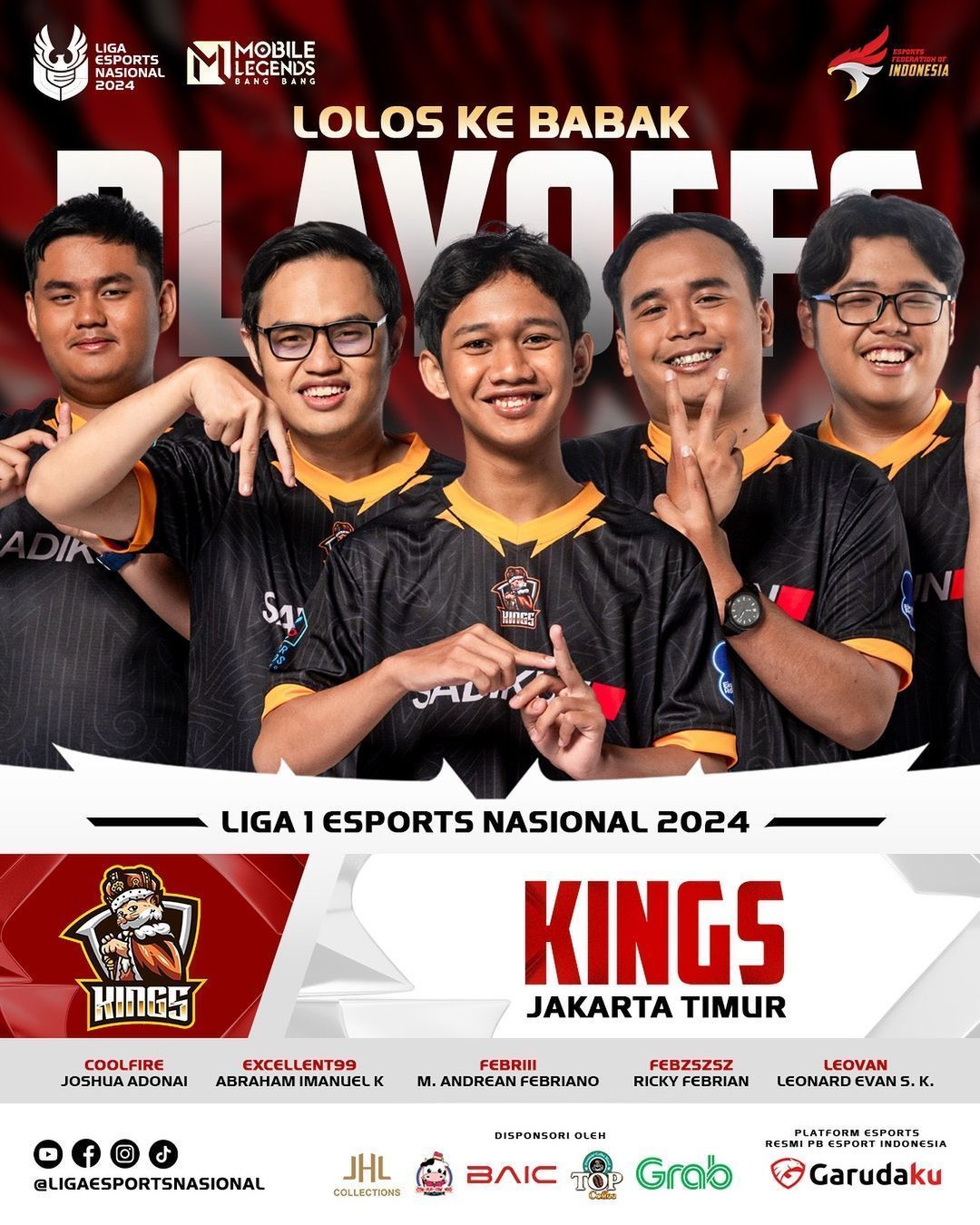 Sempat terpuruk di awal kompetisi, Kings berhasil melakukan kebangkitan dramatis setelah masuknya Stewart sebagai analyst mereka. Stewart sukses mengubah jalannya permainan dan menjadi kunci utama kebangkitan Kings sekaligus membawa mereka ke posisi kelima klasemen dan memastikan slot playoffs. Kings mengandalkan chemistry kuat antar pemain dan dengan strategi yang semakin tajam, mereka juga siap mengejutkan lawan di babak playoff nanti. Mereka akan bertarung dengan Mahadewa di match pembuka sekaligus menjadi Derby paling dinanti karena kedua tim ini sama-sama melangkah dari divisi Liga 2 LEN 2024.