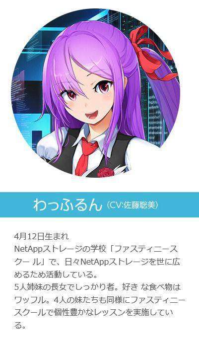 Melalui akun twitter resminya, Claudia, karakter perempuan moe yang merupakan maskot dari Microsoft Windows Azure Cloud mengumumkan bahwa dirinya mendapatkan teman baru. Dalam kicauan di media sosial tersebut, Claudia menyebutkan bahwa karakter wanita berambut ungu yang memiliki nama Waflen merupakan maskot dari layanan NetApp Private Storage.