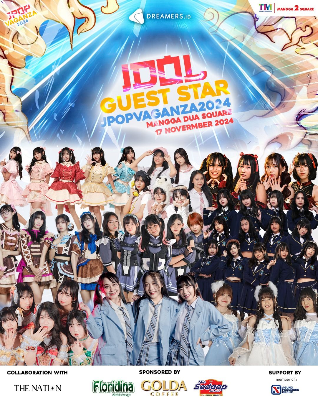 DREAMERS JPOP VAGANZA 2024 berkolaborasi dengan The Nation akan diselenggarakan pada hari Minggu, 17 November di Mangga Dua Square. Acara ini disponsori oleh Floridina, Golda Coffee, dan Mie Sedaap!