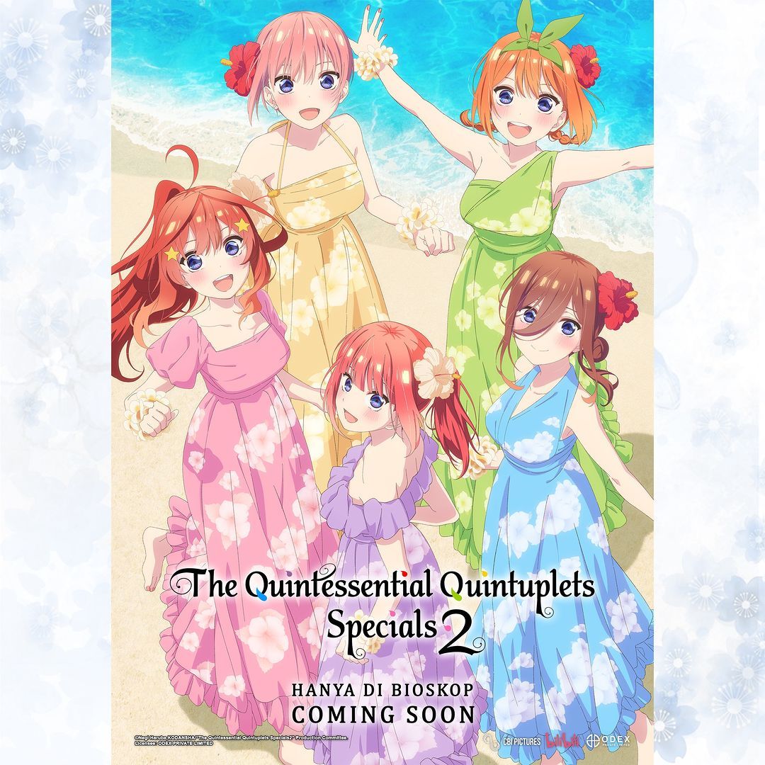 Siapa yang kangen dengan kisah si kembar lima Nakano bersaudari di seri Go-toubun no Hanayome alias The Quintessential Quintuplets? Distributor film Odex Indonesia dan CBI Pictures melalui laman sosial mereka mengumumkan akan menayangkan episode spesial The Quintessential Quintuplets Specials 2 di beberapa jaringan bisokop indonesia!