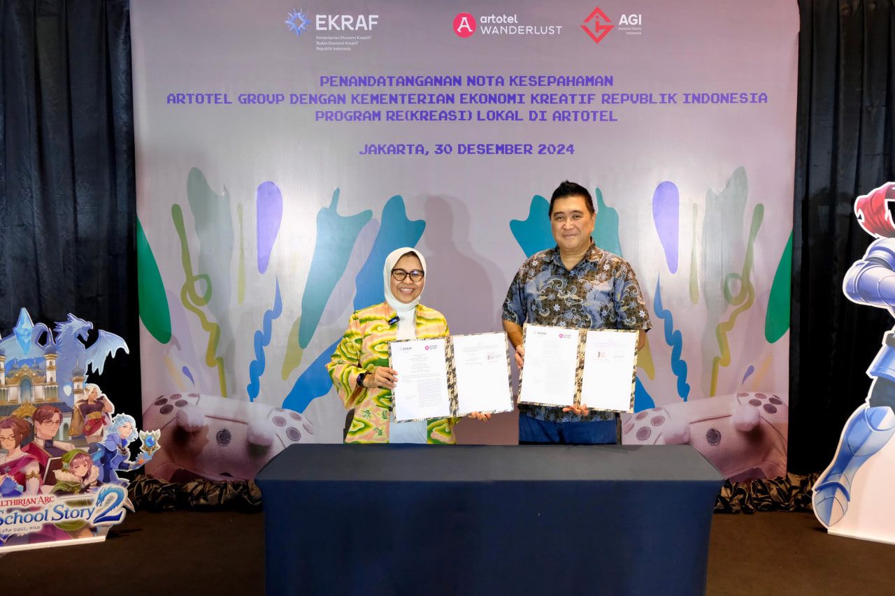 Kementerian Ekonomi Kreatif/Badan Ekonomi Kreatif (Kemenekraf/Bekraf) dengan Artotel Indonesia sepakat berkolaborasi melalui penandatanganan nota kesepahaman bersama (Memorandum of Understanding/MoU) untuk mempromosikan gim Indonesia saat momen liburan Natal 2024 dan Tahun Baru 2025. Penandatanganan dilaksanakan di ARTOTEL Thamrin Jakarta, Senin (30/12/2024) oleh Plt. Sesmenekraf/Sestama Bekraf, Dessy Ruhati, dengan Direktur PT Artotel Indonesia (Artotel Group), Eduard Rudolf Pangkerego. Kolaborasi ini dikemas dalam bentuk program bertajuk Re(Kreasi) Lokal yang menghadirkan fasilitas gim lokal asli buatan Indonesia untuk dapat dimainkan di jaringan hotel Artotel Group.